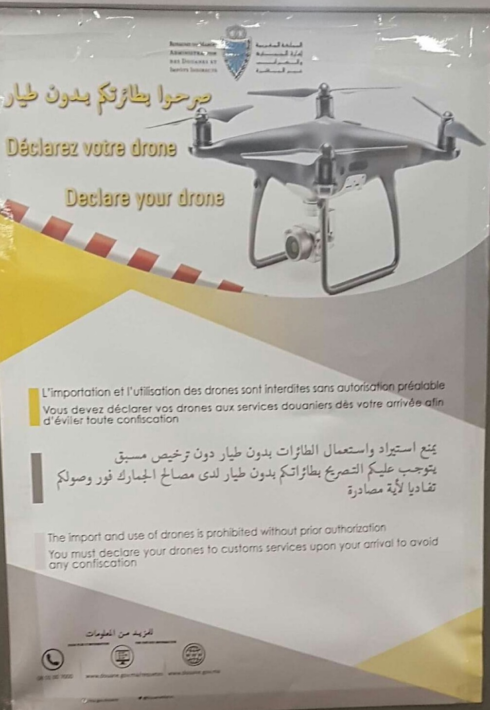 Il est strictement interdit d'y introduire un drone de loisir. Utilisation d'un drone interdite au Maroc
