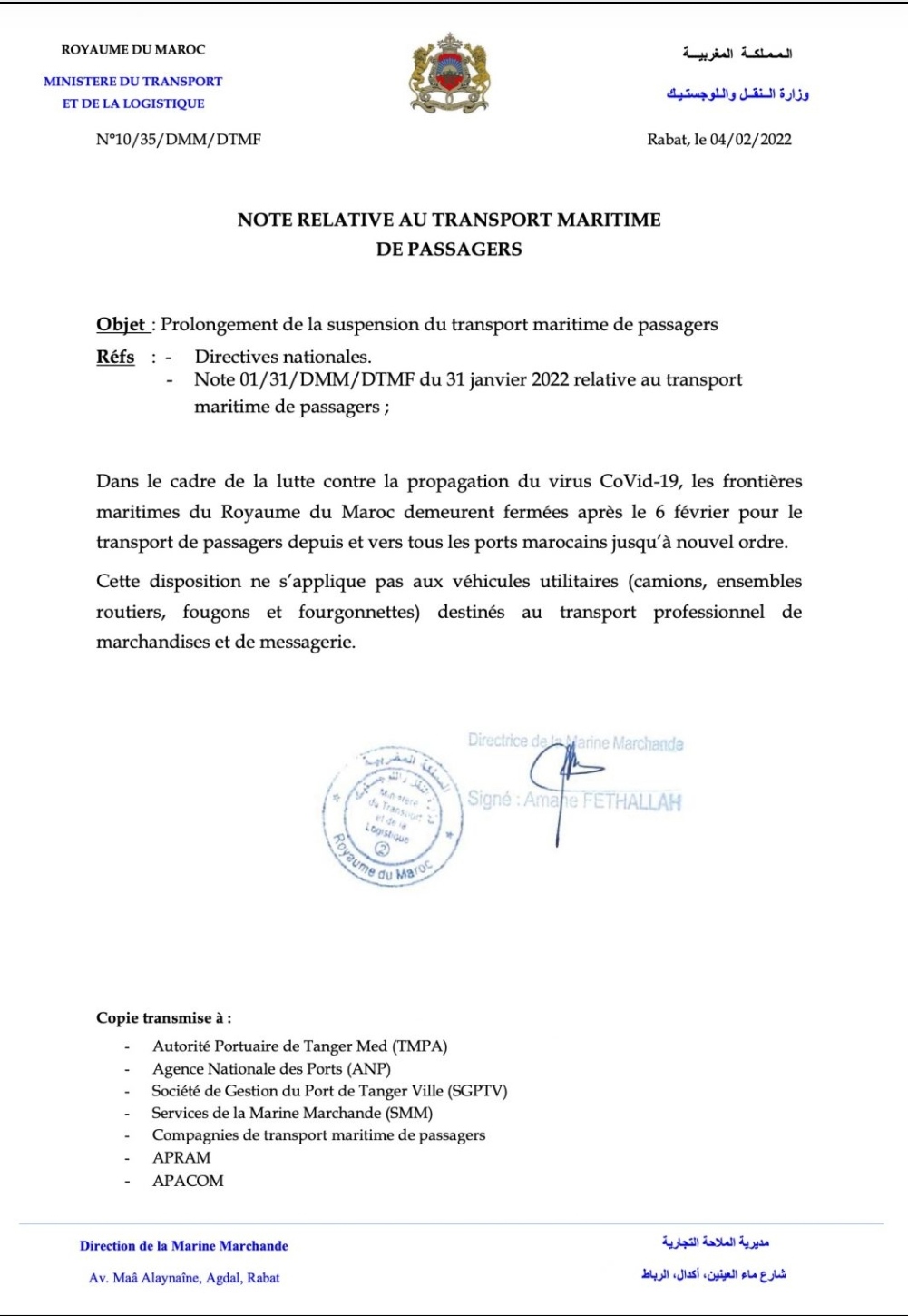 Il semblerait que le report soit lié au délai nécessaire à la mise en place d'un laboratoire de biologie à Tanger Med afin de tester les arrivants.