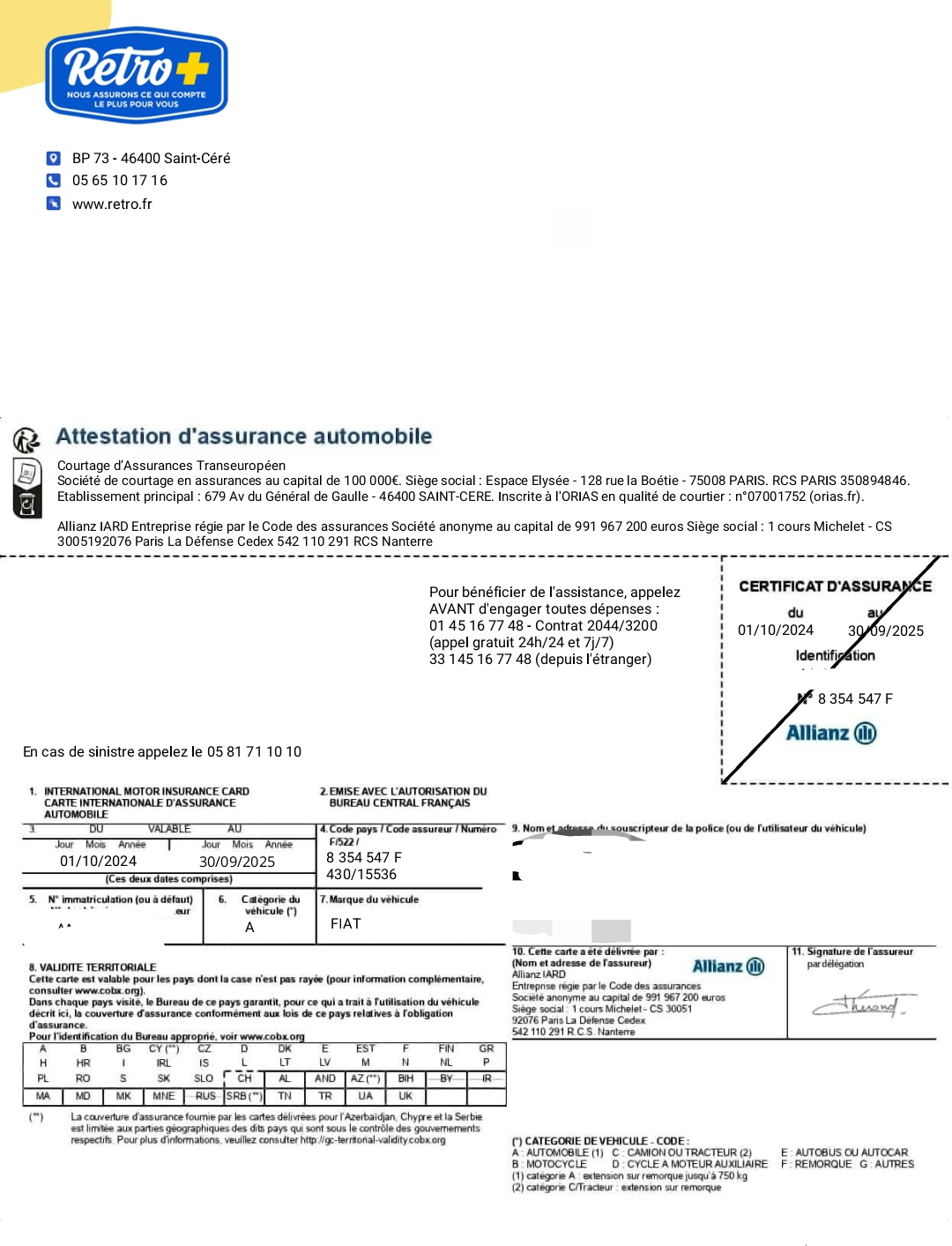 Reçu par courrier une attestation sur feuille blanche pour le CC ainsi que pour mon MP3 .