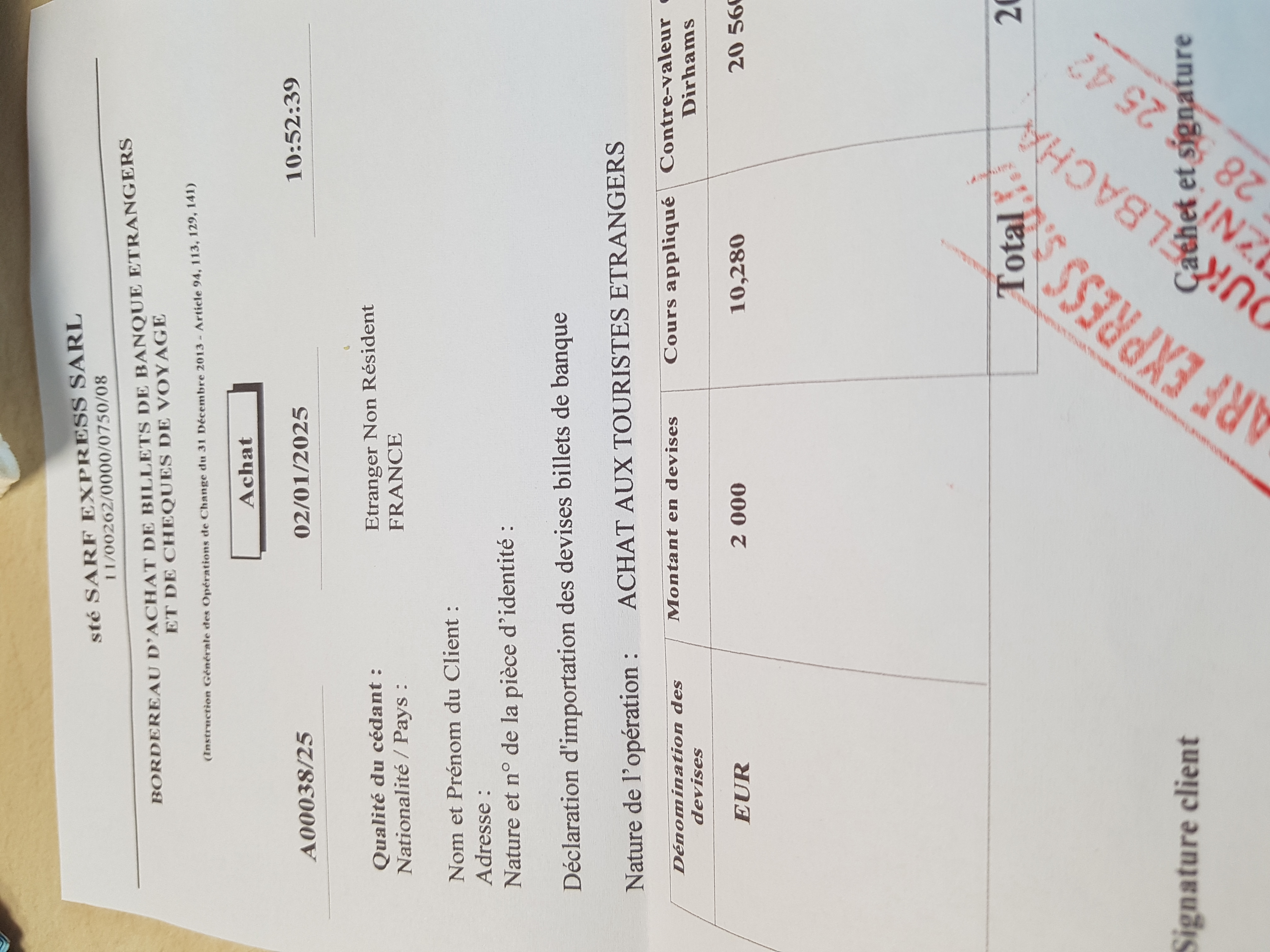 Il n'est pas possible de changer des euros en dirhams en France . Tu es obligé d'être sur le territoire Marocain pour faire du change .
