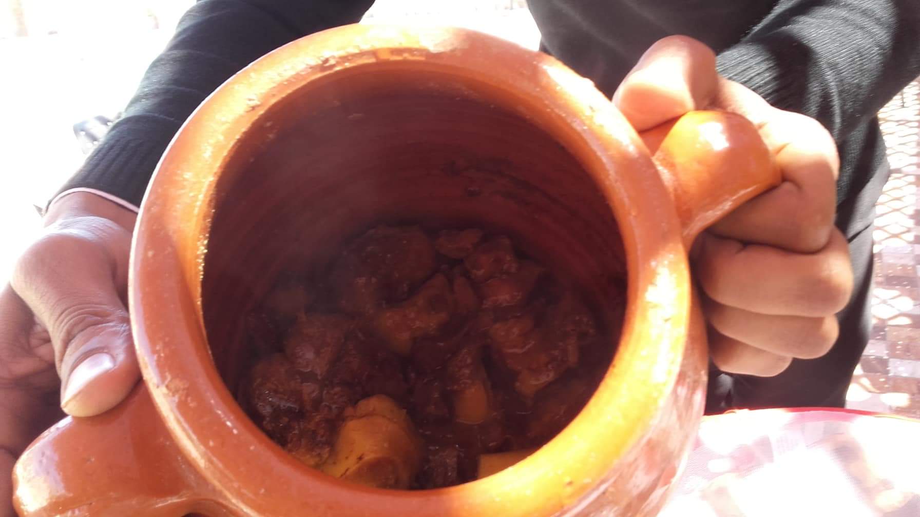 Une spécialité de Marrakech, du bœuf cuit pendant de longues heures dans un pot en terre cuite.