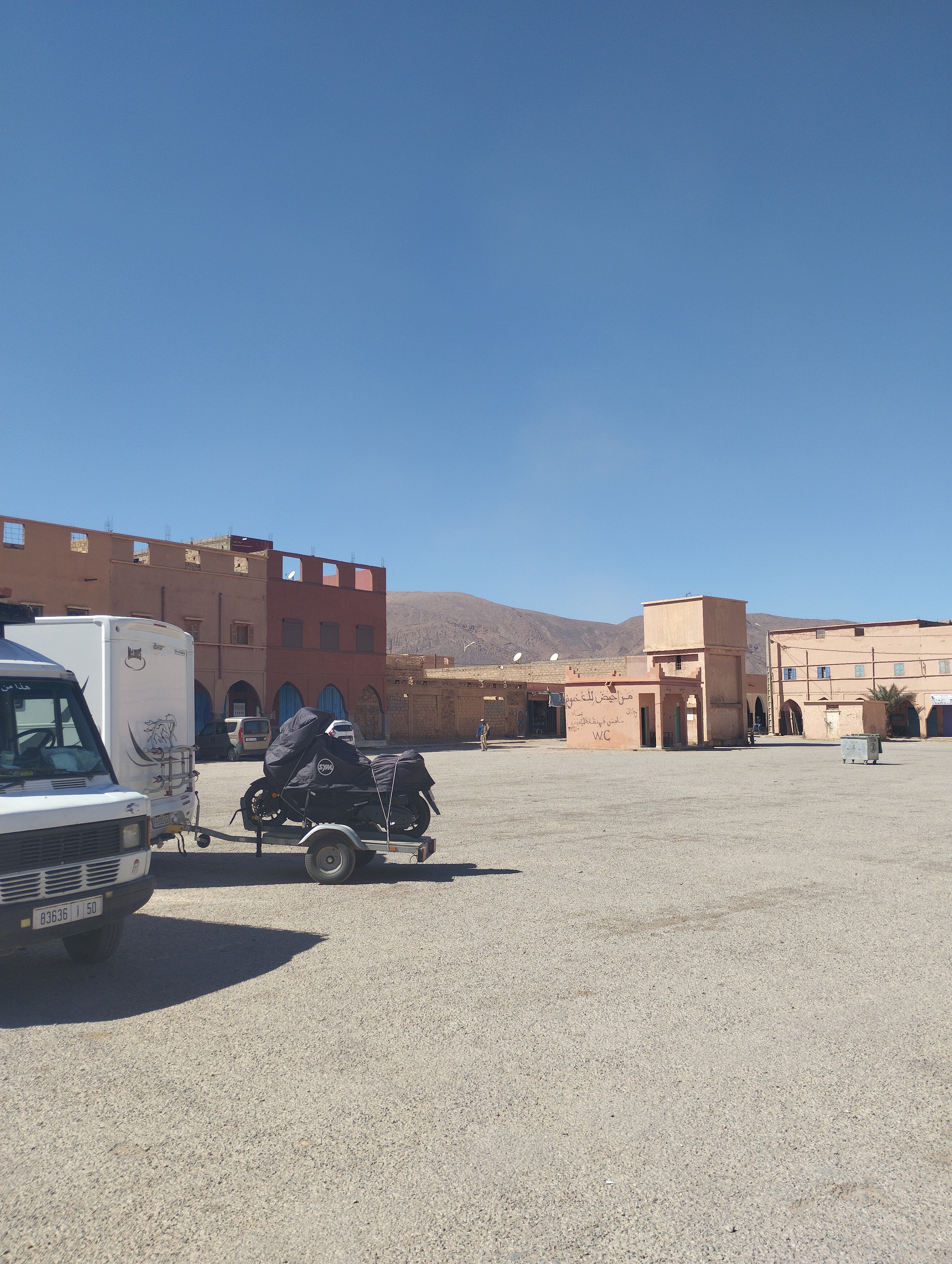 Il y a parfois des cc stationnés sur la place centrale du village,je pense pour économiser les 60 DRH. Moi j'ai besoin du courant cette année .Il y a des toilettes publiques sur cette place et les petits commerces tout autour .Aucune moto n'est cadenassée ,il y en a même qui laisse tourner le moteur quand ils font leurs achats:c est rassurant.