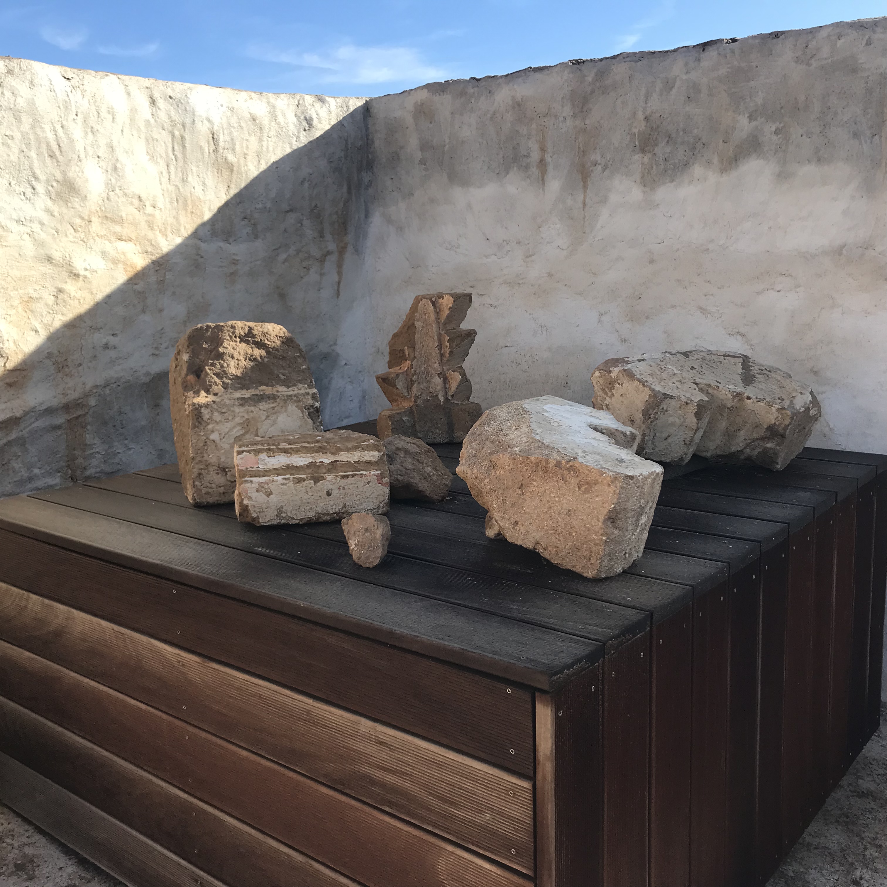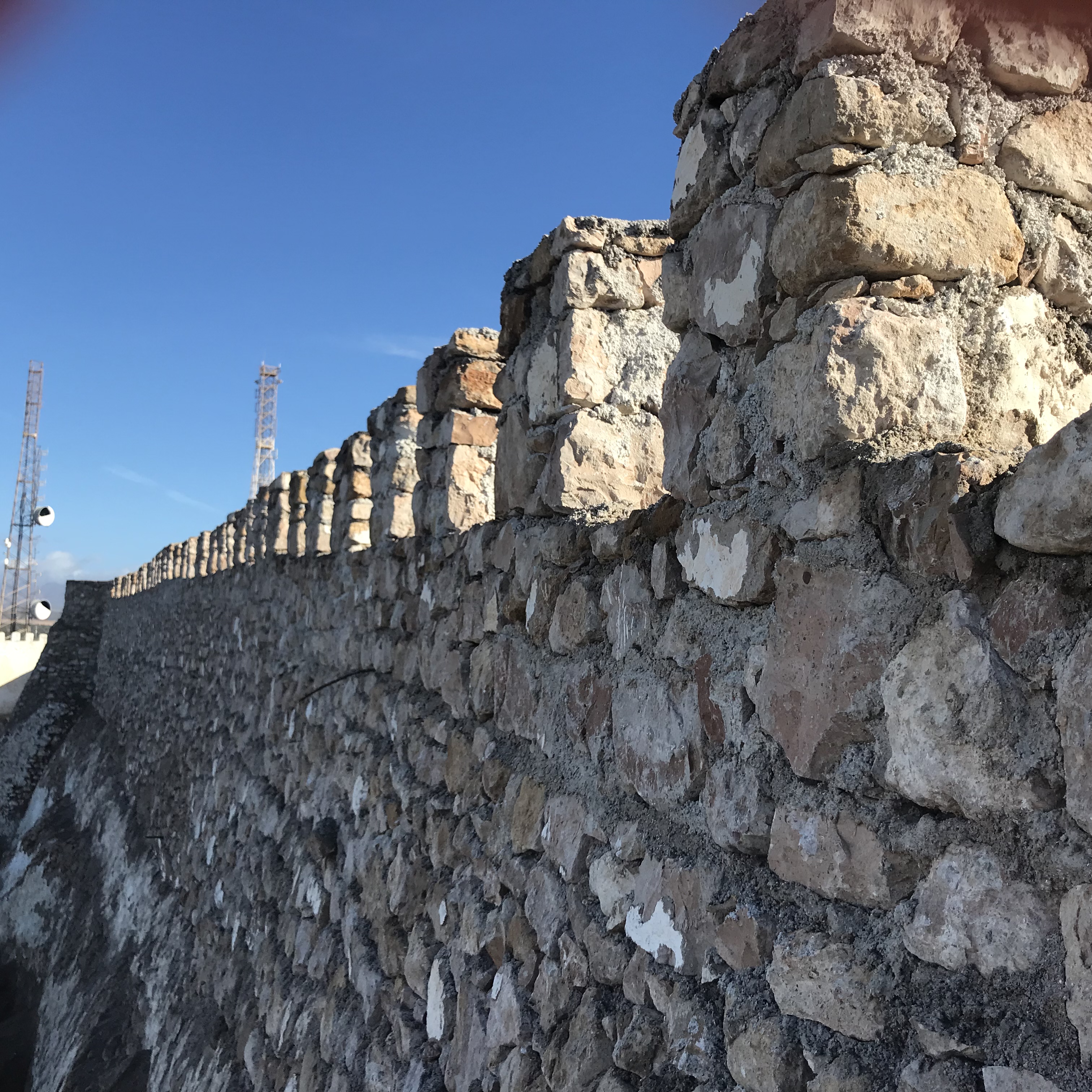 on peut voir qu'un pan de muraille recemment reconstruit a ete a nouveau en parti detruit par le dernier seisme..