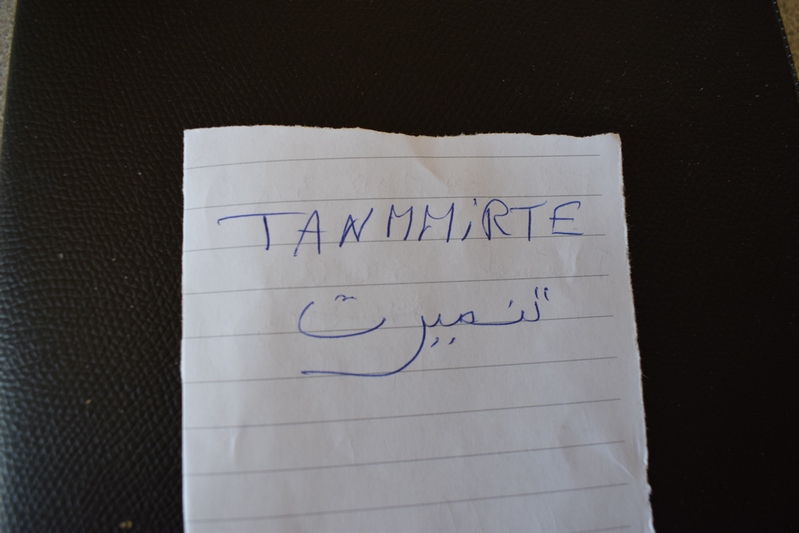 Gentiment, il me dit " tanmirt " et en même temps me l'écrit sur mon papier en " français " et ... en " arabe " !