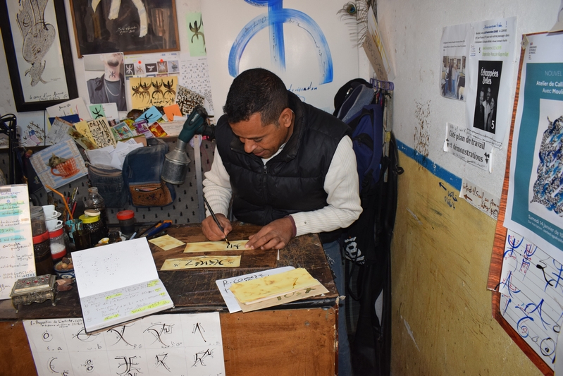 je rends visite à Moulid Nidouissadan qui est un artiste en calligraphie tifinagh .