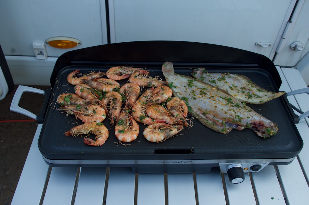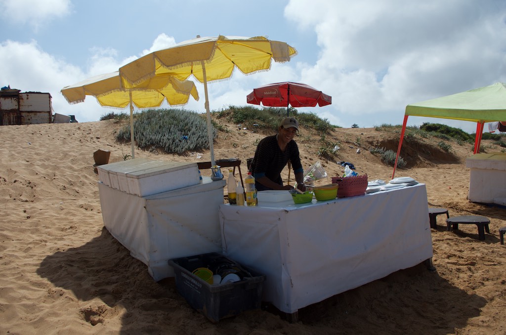 Nous avons mangé des poissons et des fruits de mer sur la plage