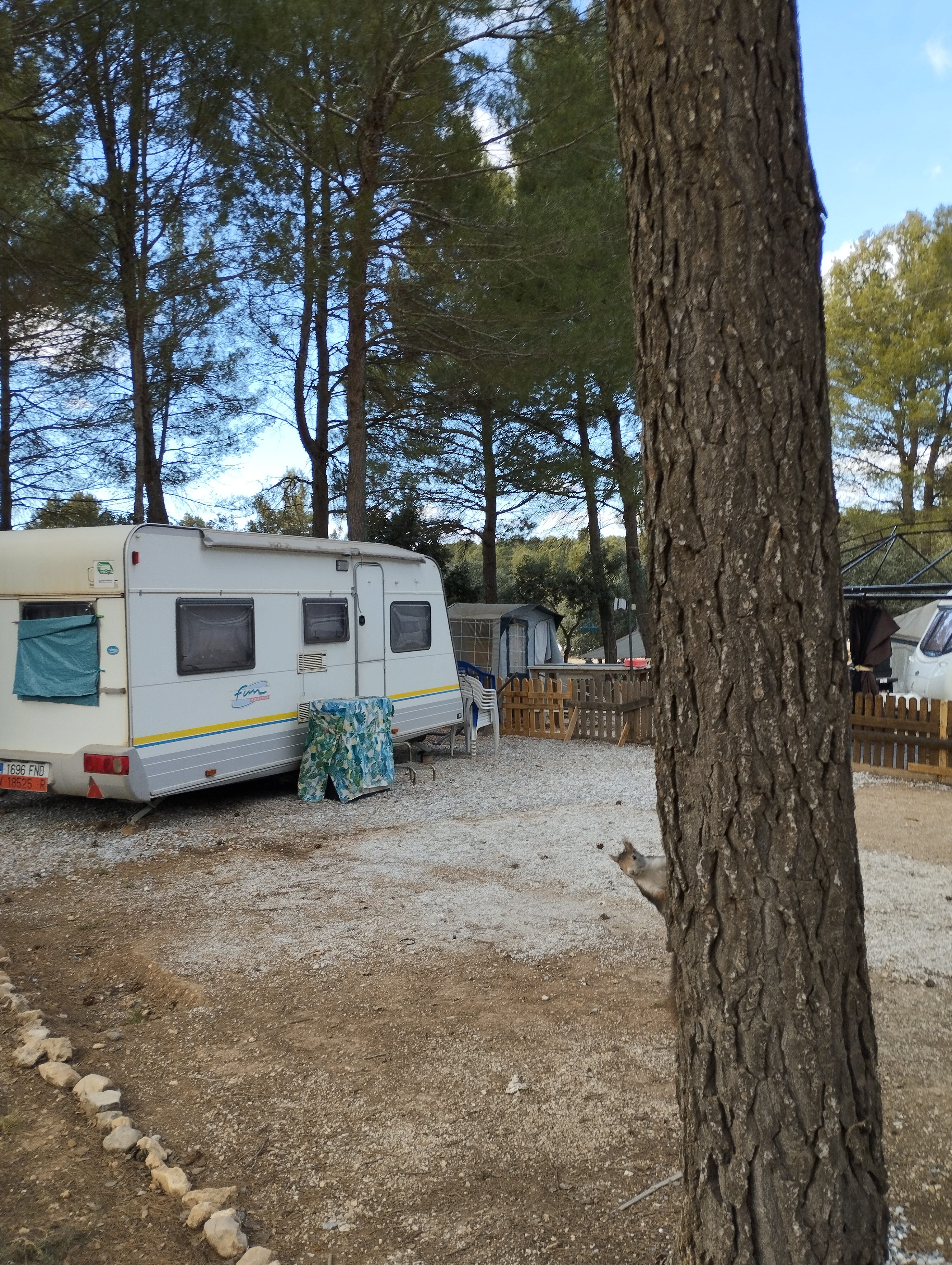 Oui oui monsieur l'écureuil surpris sur son  tronc ,il s'agit bien d'un client dans ton camping qui te prend en photo (camping Sierra Maria :janvier 2023)