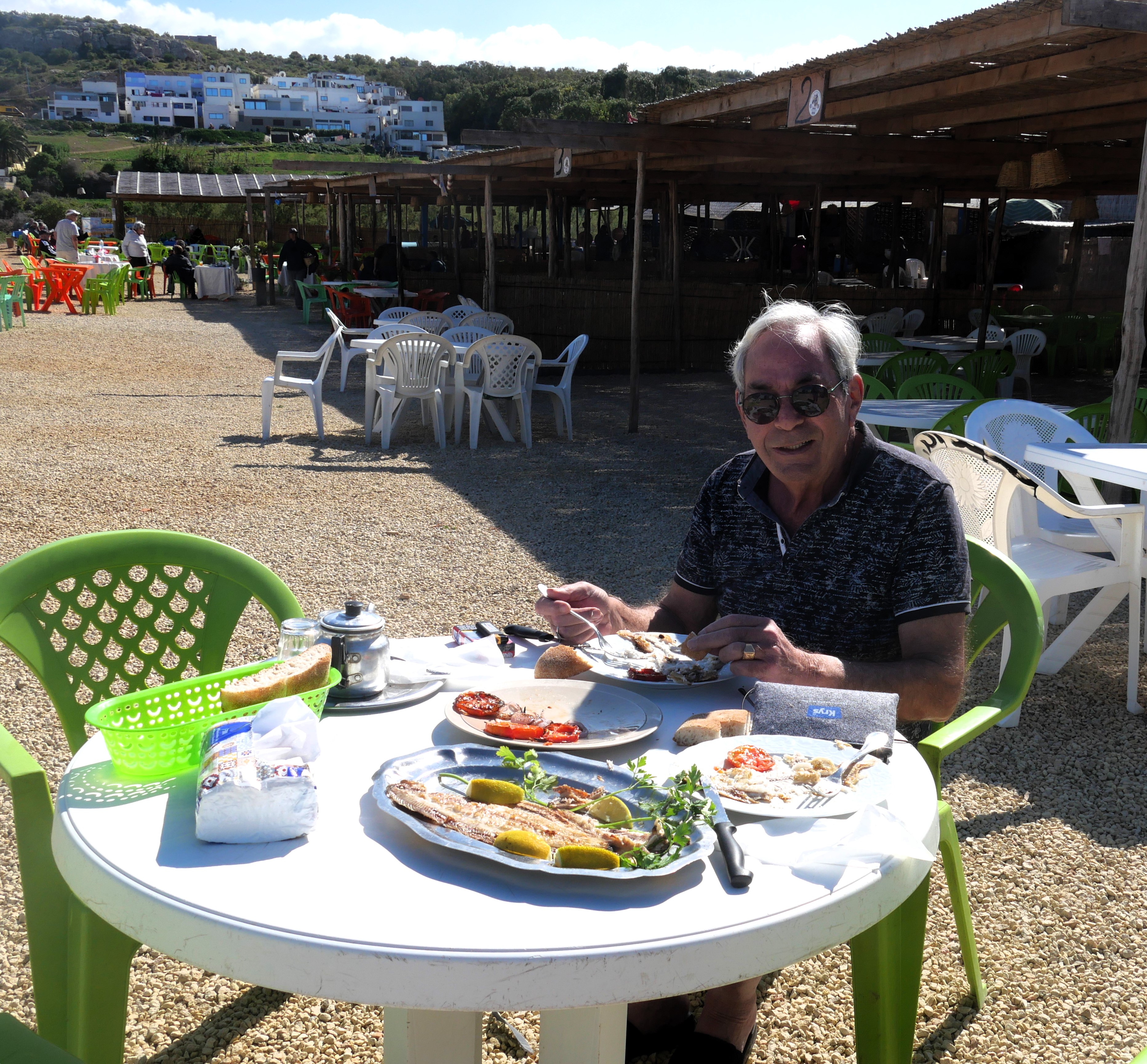 nous partons demain pour Essaouira, nous avons apprécié le parking de Oualidia, il y a maintenant un vrai robinet d'eau, des wc, et les cabanes de pêcheurs où nous pouvons manger du bon poisson, hier nous étions au n°2 Hamou, nous avons eu de belles grosses soles grillées, un calamar et gambas cuisinés avec ail et persil, et j'ai demandé à la place de la salade marocaine des tomates et oignons grillés c'était tout parfait ! toujours de belles balades bord de mer avec de belles grosses vagues ! aujourd'hui nous avons testé le resto "Au Crabe" en ville c'est pantagruélique ! très bon accueil, beau cadre, bons poissons et crustacés ! on profite bien des bonnes ressources de la mer tant qu'on est sur l'Atlantique, car après ce sera moins souvent je ne mange pas de viande...