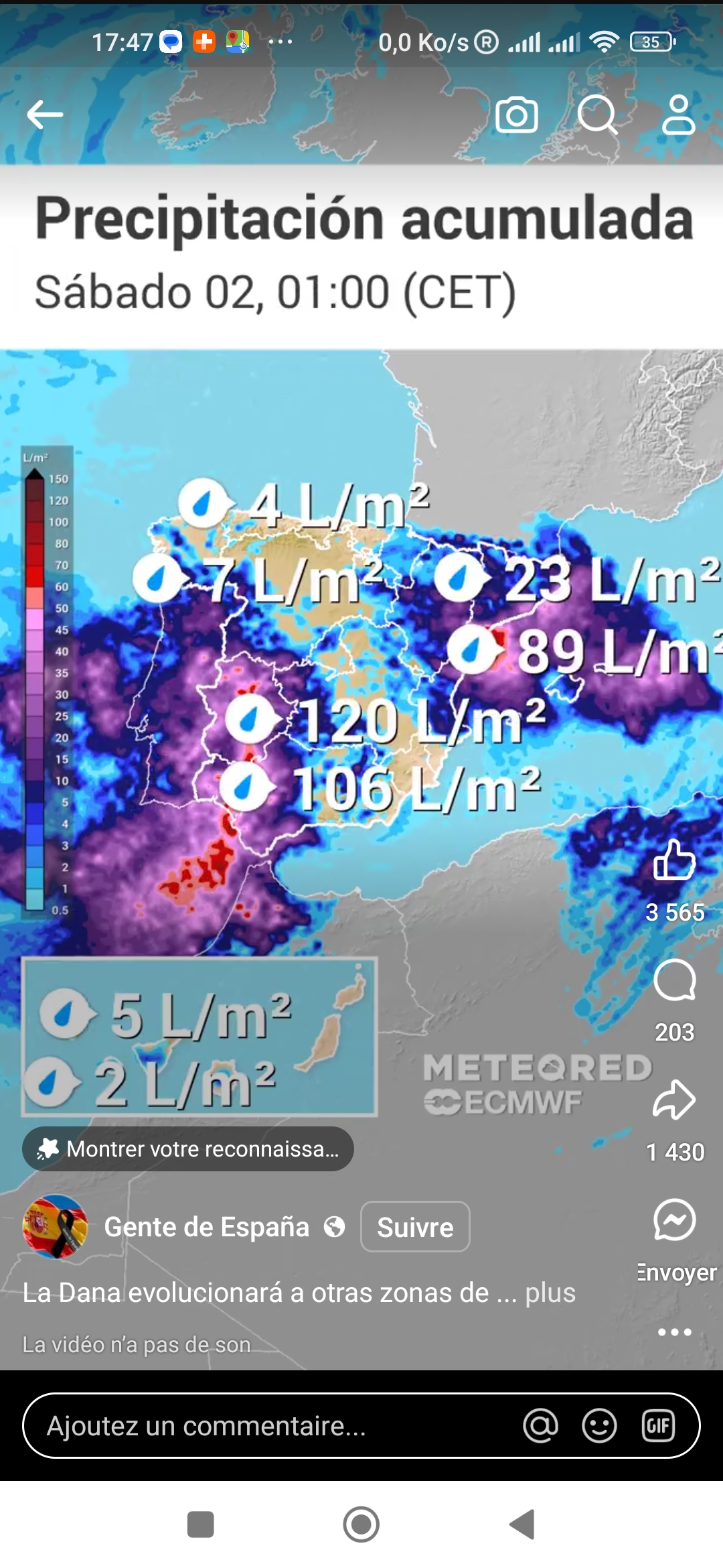 Une pensée pour tous ceux , Espagnols et autres , qui sont dans la détresse à cause de ces catastrophes météorologiques.