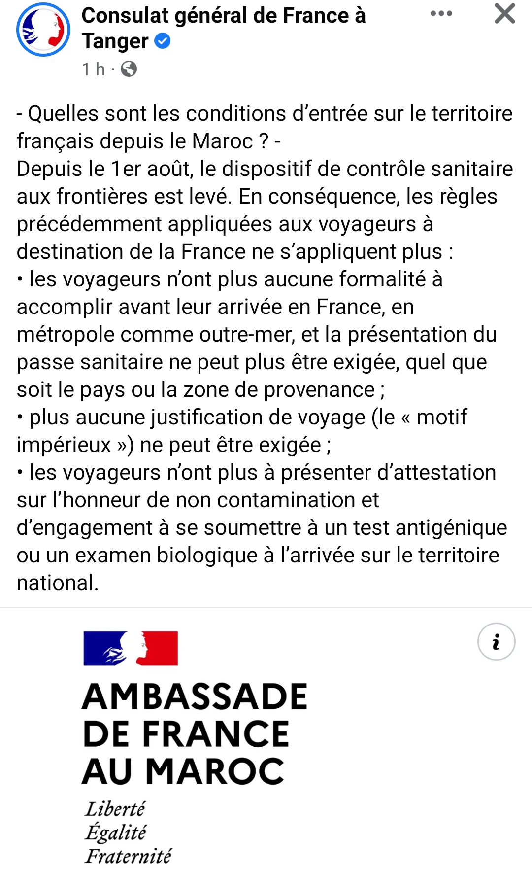 Un point de l'ambassade de France concernant le retour du Maroc vers la France : aucune exigence sanitaire !