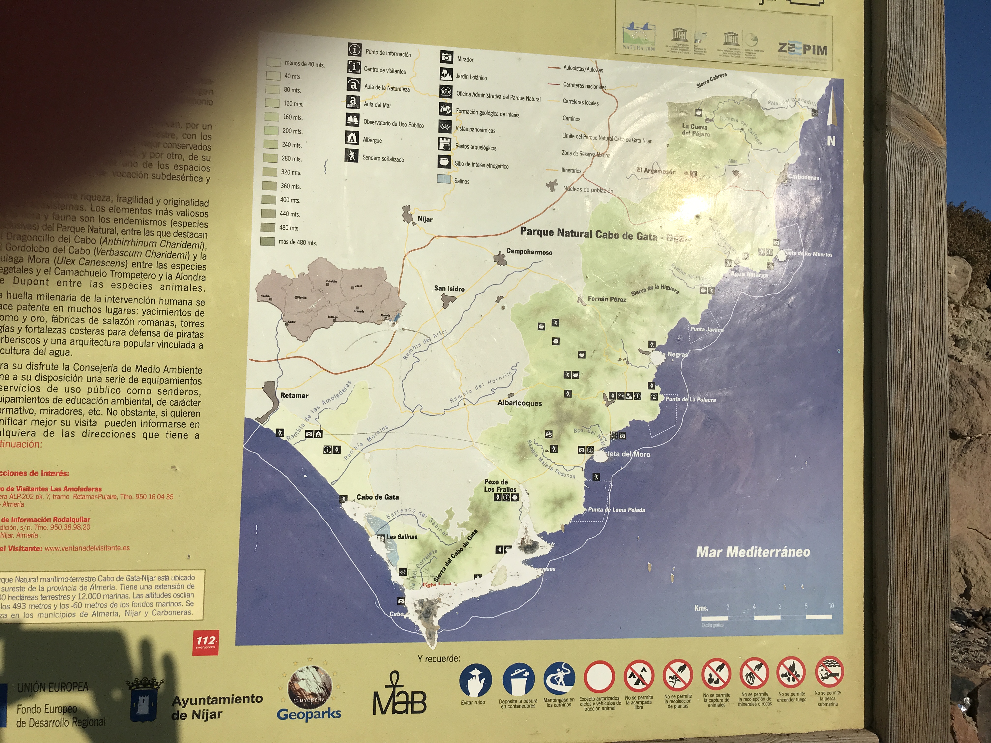 Donc à priori Michel nous n'avons rien à regretter d'être resté à Peniscola . Hier nous avons eu 17° au meilleur de l'après midi .Sinon pas une grosse chaleur environ 16° guere plus qu'à Peniscola . Il y a beaucoup de monde ,meme sur les bivouacs si on ne se fait pas virer a 9h00 du soir par la guardia ,ce qui nous ai arrivé a Cabo de Gata sur le parquing du cimetiere.