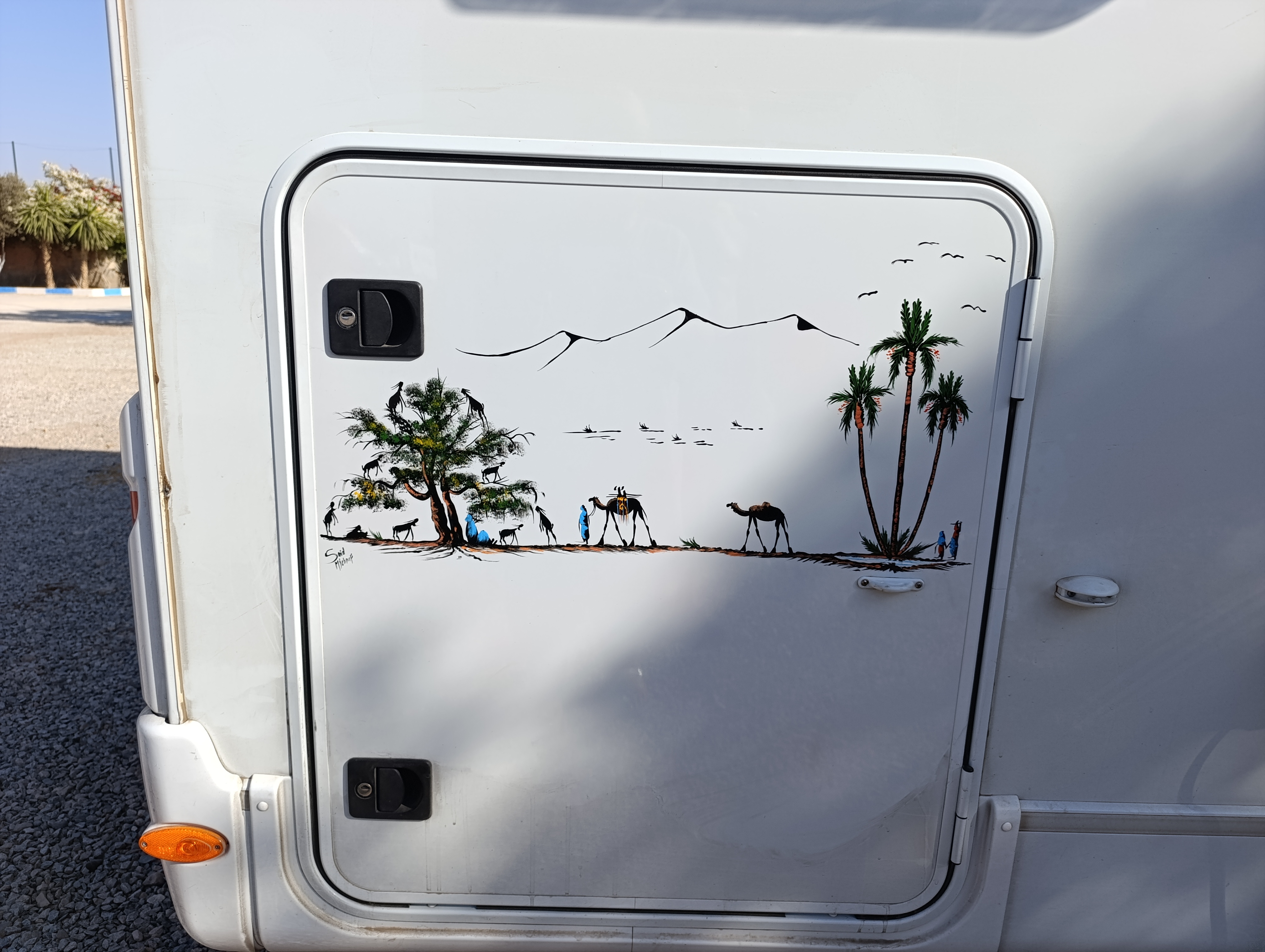 Nous avons craqué pour un souvenir du Maroc, sur la porte de la soute de notre camping car. Très contents du résultat, on recommande SaÏd