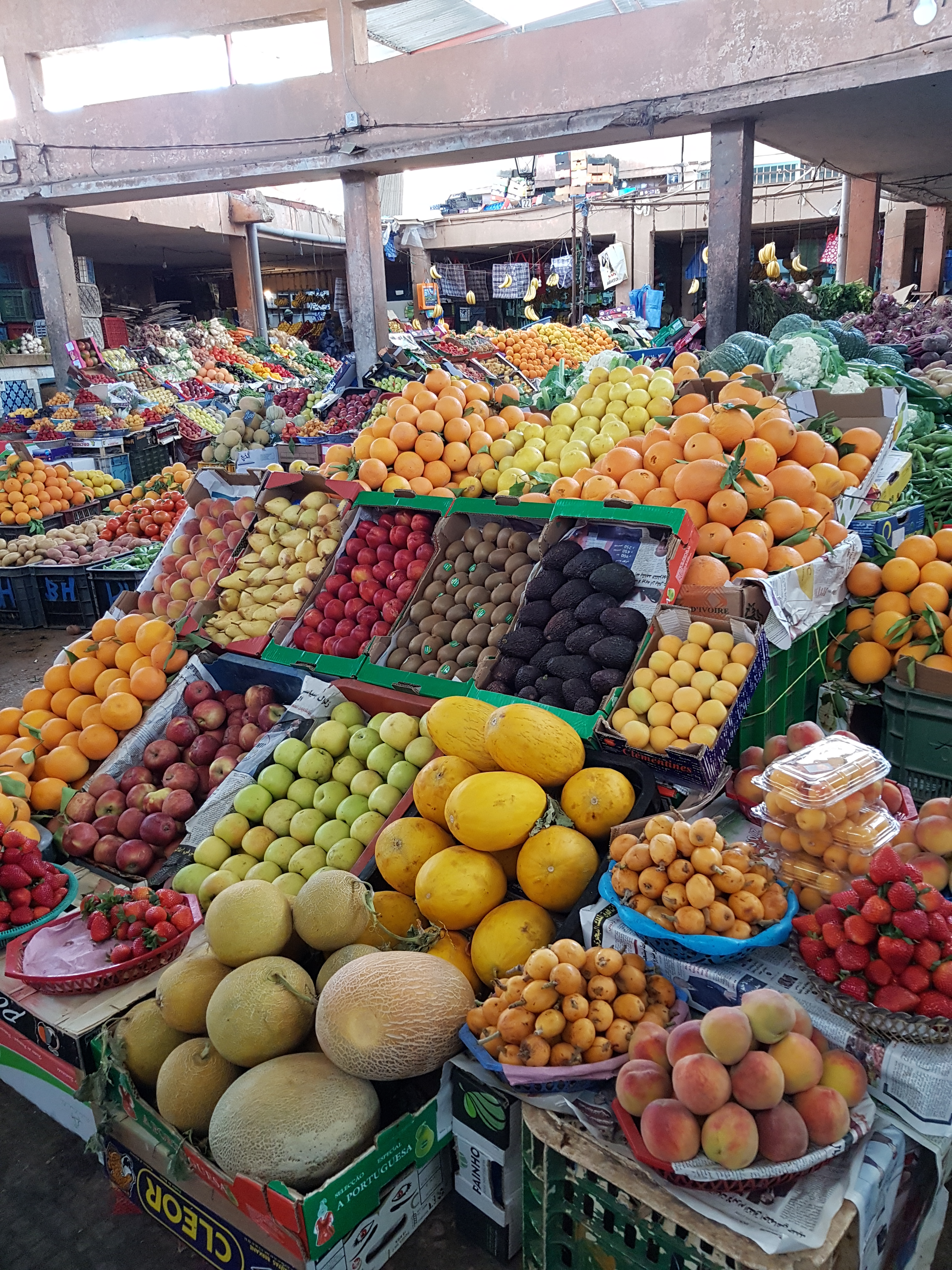 marchand de fruits et légumes dans petit souk Ville Nouvelle de Tiznit