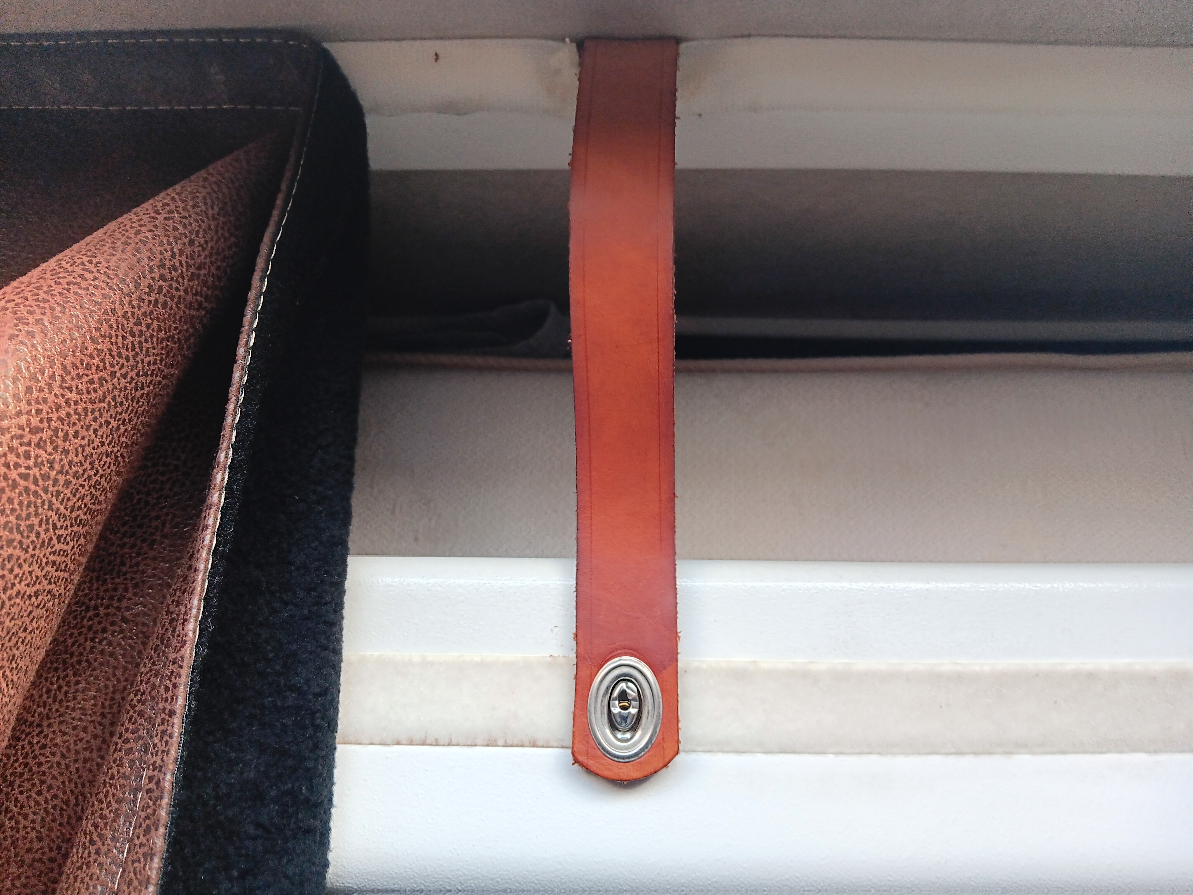 Tu peux aussi le faire avec des ceintures de sécurité se qui te permets de fixer la partie femme à ras le pavillon
