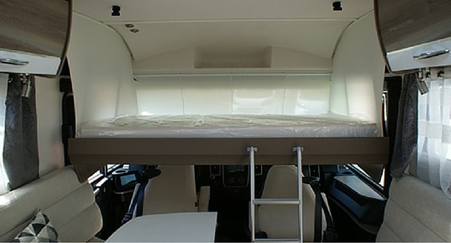 Mais ce n'est pas si simple car le lit est manœuvré électriquement par un système de courroie. Il descend au dessus du SALON ARRIÈRE du camping-car et occupe toute la surface la nuit.
