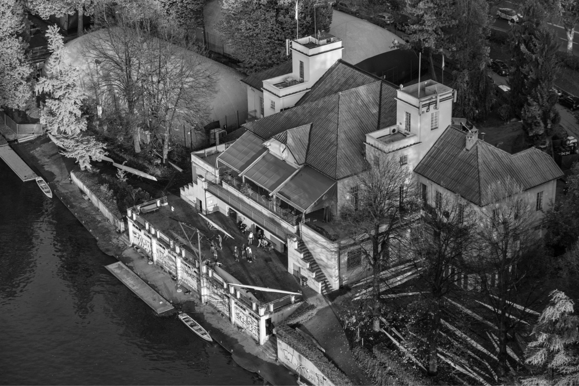 C'est bien dans une ville le long d'un fleuve ...mais que sont les 2 bâtiments (au bord du fleuve et sur la colline )