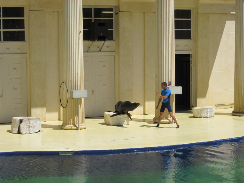 Mise à l'eau de l'otarie pour un spectacle situé à Walibi sud Ouest