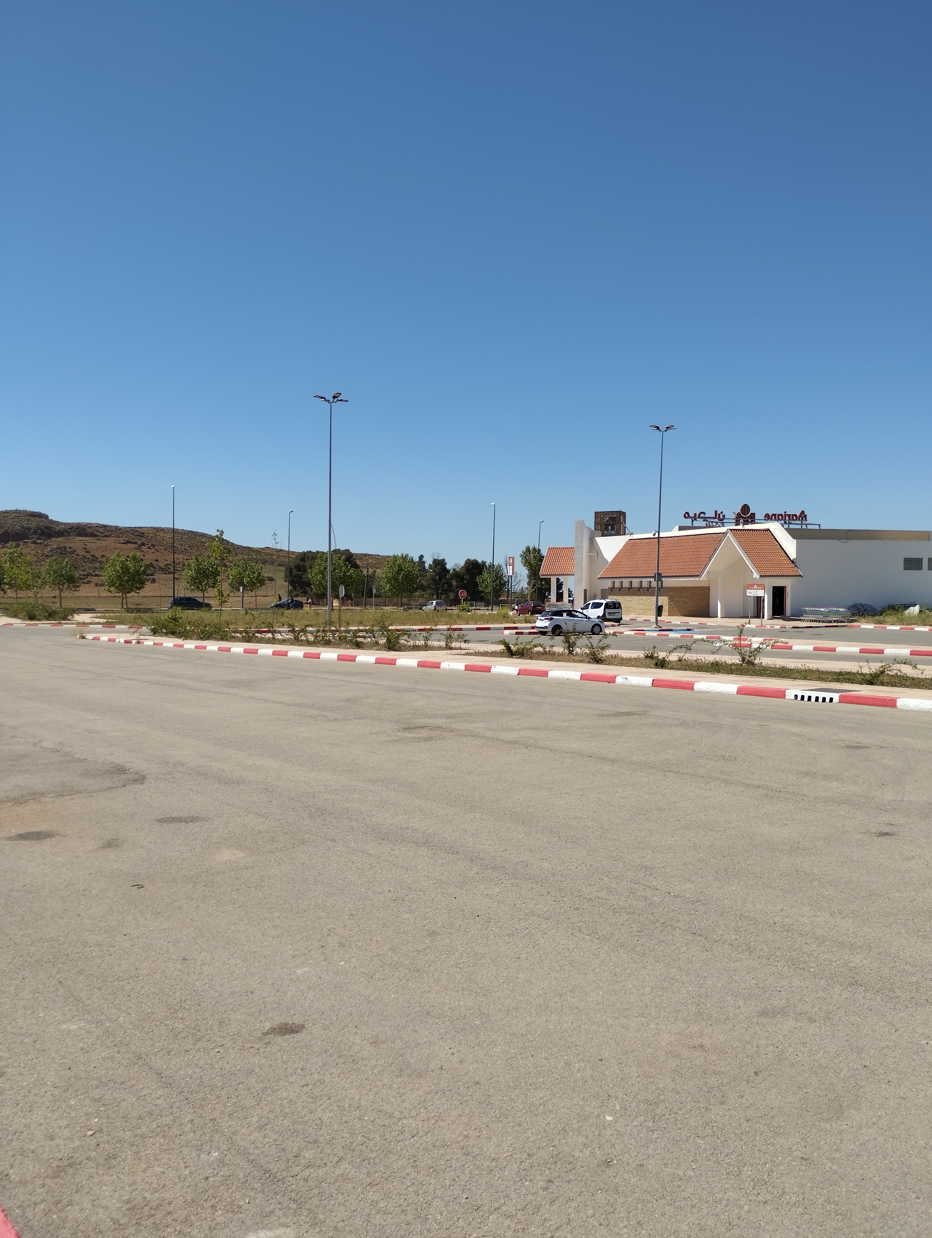 Le Marjane Market situé en bordure de la N13 au Sud d'El-Hajeb entre Meknès et Azrou dispose d'un parking assez accessible à tous gabarit ce qui n'est pas systématique pour les moyennes surfaces .