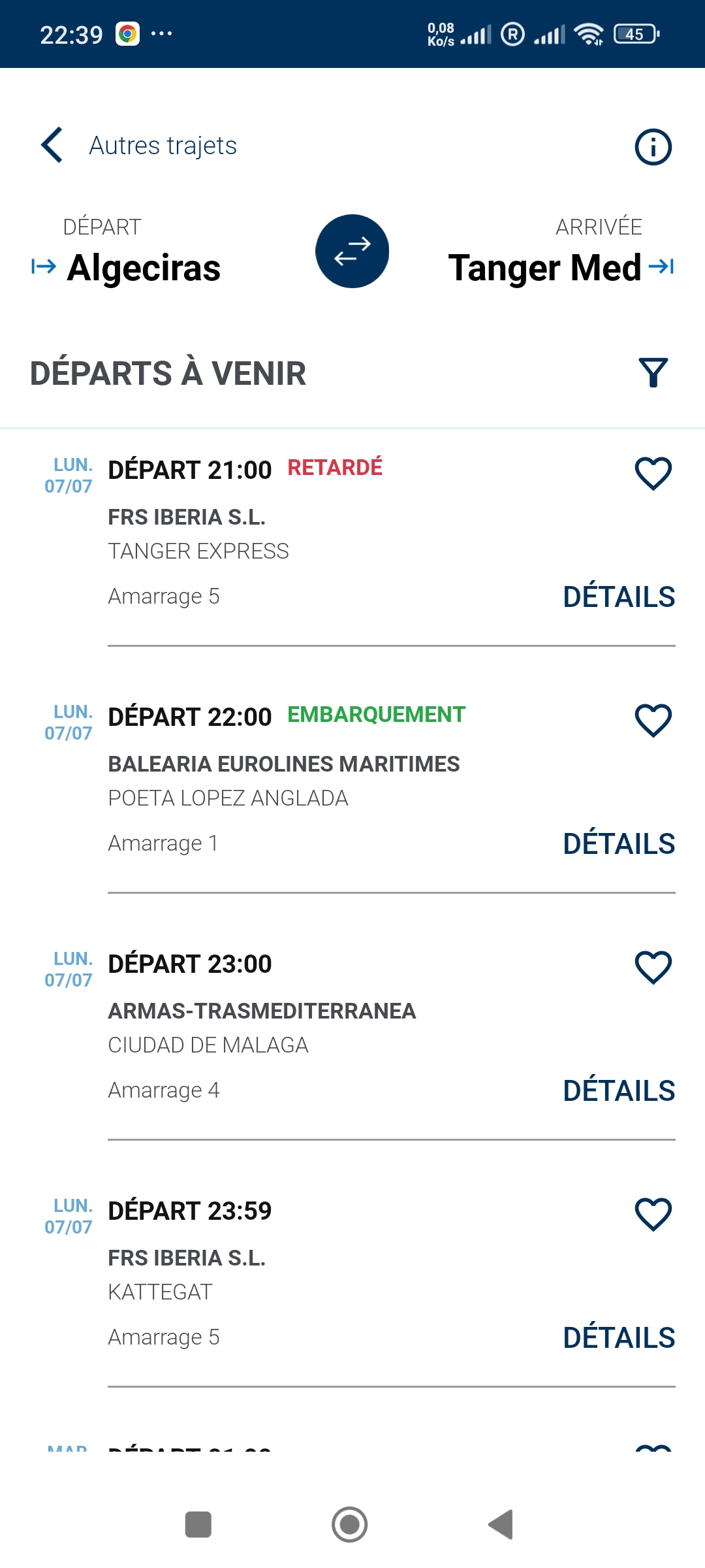 J'ai trouvé une appli qui permet de connaître en réel le départ des bateaux depuis Algeciras ou Tarifa vers le Maroc ou Ceuta.